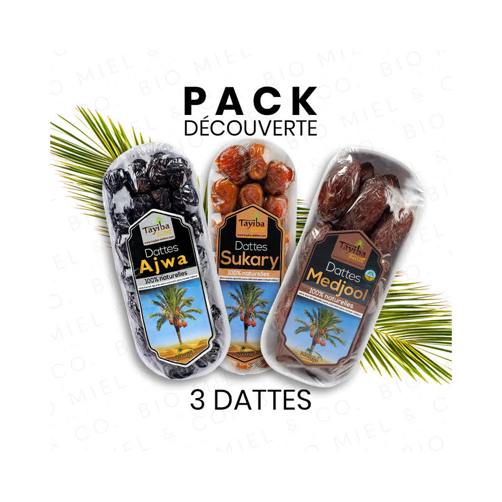 Una sola fruta, el dátil... Pero varios gustos, varios sabores, varias texturas y varias virtudes por descubrir en este formato tan práctico (3 barquetas de 300gr), podrás degustar nuestros: